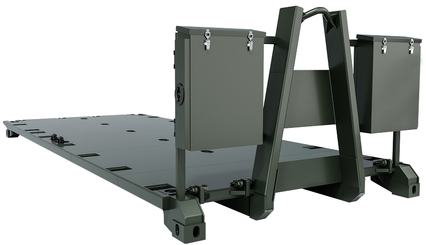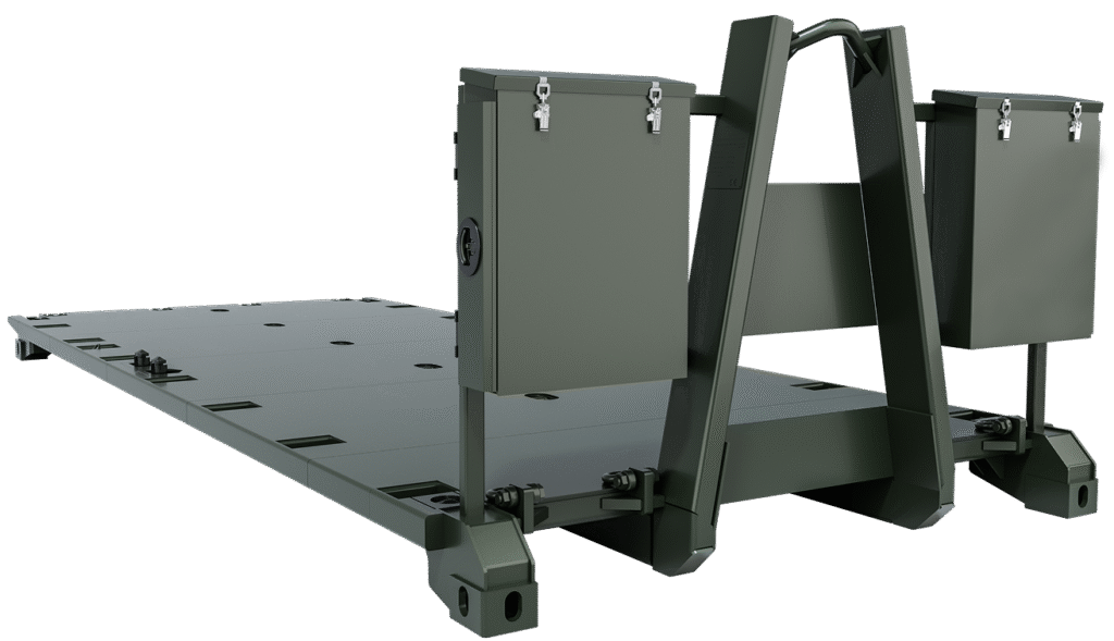 Rotate and zoom to explore the platform’s reinforced frame and heavy-duty construction. See how the flatrack is designed for rapid loading, intermodal transport, and secure handling across standard military and logistics systems. Experience the precision-engineered steel structure, durable surface materials, and optimized weight distribution that ensure maximum reliability under demanding operational loads. Built for military transport, emergency logistics, and industrial applications, the flatrack platform delivers strength, stability, and versatility — providing a dependable base for equipment movement wherever fast deployment and high load capacity are essential.
