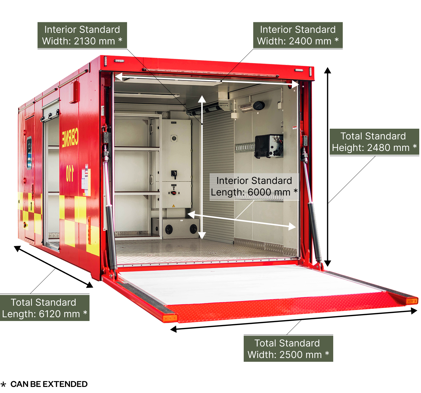 All components can be tailored with additional storage modules, side openings, power units and protective elements depending on operational needs