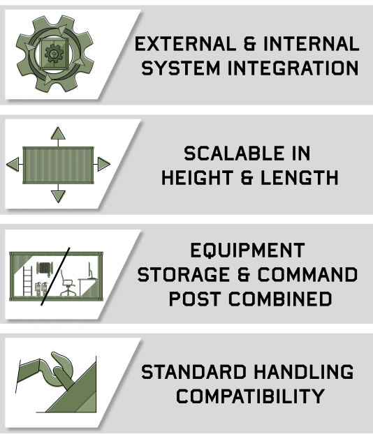 The 3in1 expandable shelter model has been in continuous production for over 15 years and delivered in numerous variants to demanding customers worldwide. Built with a solid ISO-certified steel frame, a unique extruded aluminium hinge system, high-quality sandwich panels, and heavy-duty rubber gaskets, the shelter ensures exceptional durability, meeting the toughest climatic and operational requirements. Designed for all applications requiring highly mobile facilities, it offers a superior working environment and reliable autonomous operation.