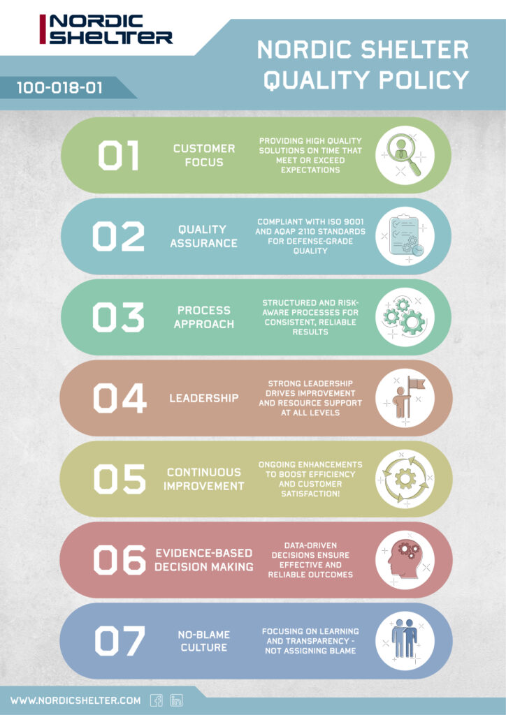 Nordic Shelter complies with NATO quality assurance standards, guaranteeing that every delivered shelter meets the highest demands of defense, reliability, and mission-critical operations.